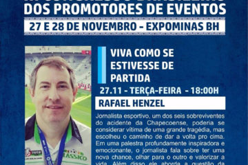 Rafael Henzel realiza palestra em BH 2 anos após tragédia da Chape Redacao 23 de novembro de 2018 Cultura, Notícias Um dos seis sobreviventes do maior acidente aéreo da história do futebol, ocorrido em novembro de 2016, jornalista estará presente no Congresso Nacional dos Promotores de Eventos para palestra emocionante sobre... Leia mais...