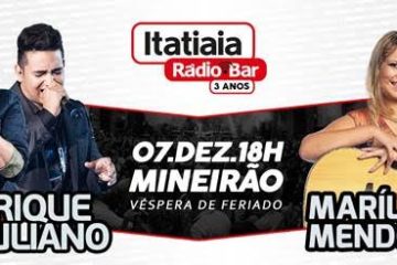 Aniversário do Itatiaia Rádio Bar apresenta Marília Mendonça e Henrique e Juliano na Esplanada do Mineirão Redacao 18 de outubro de 2016 Cultura, Notícias Festa acontece no dia 7 de dezembro, véspera de feriado O Itatiaia Rádio Bar completa três anos e promove, mais uma vez, uma grande festa para comemorar o seu aniversário. No dia 7 de dezembro, quarta-feira,... Leia mais...