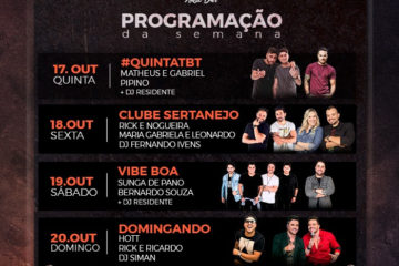 Rust Music Bar apresenta sertanejo, samba e pagode durante a semana Redacao 17 de outubro de 2019 Cultura, Notícias De quinta a domingo, casa receberá shows de Matheus & Gabriel, Pipino, Rick & Nogueira, Maria Gabriela e Leonardo, DJ Fernando Ivens, Sunga de Pano, Bernardo Souza, Hott, Rick & Ricardo e DJ Siman ... Leia mais...